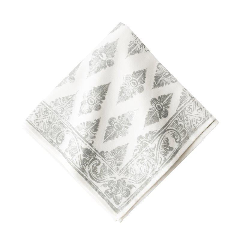 Reminiscent of the romantic designs found etched throughout European architecture, the delicate pattern on the stunning silver Florentine Gypsy napkin gives your elegant table an exotic twist.
