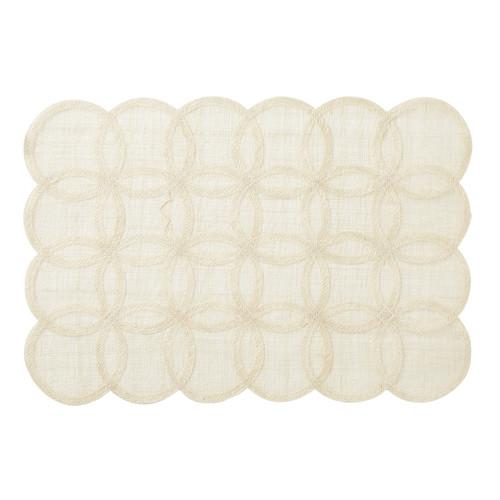 19"L, 13"W. The Jardins du Monde placemat features ethereal scrolls and an airy texture, intricately hand-stitched and designed for any place-setting. Spot clean as needed.