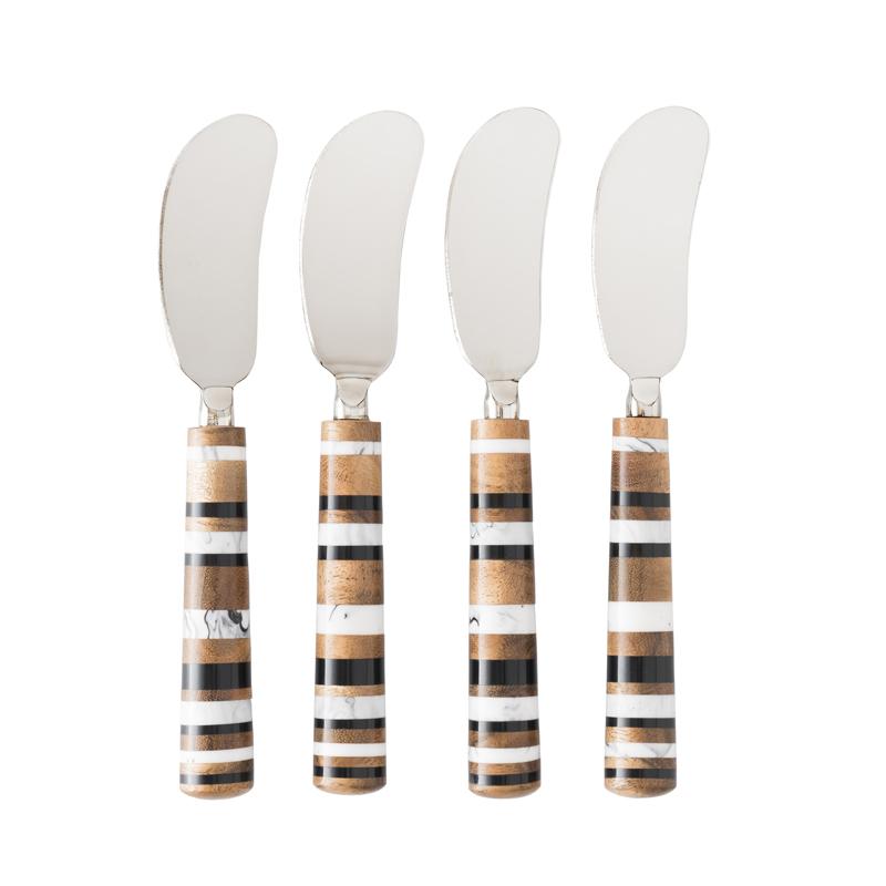 Rustic and refined materials such as rich Acacia wood, marble, and resin make up this beautiful line of serving pieces.