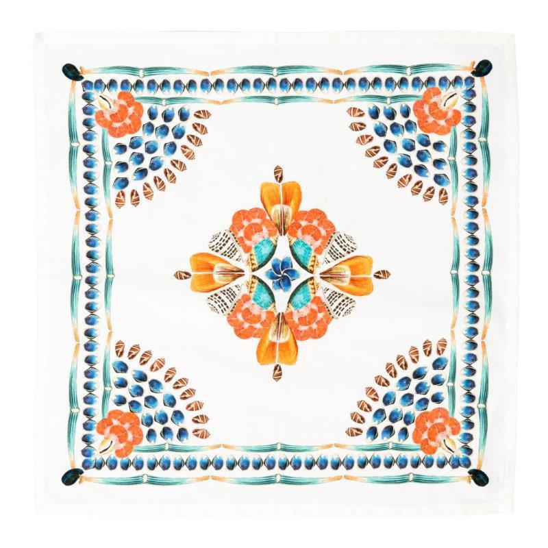 A bright seashell mosaic pattern brings a chic print to an otherwise casually elegant linen.