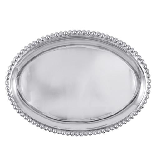 The Mariposa Pearled Large Platter is perfect for serving main dishes or as a decorative statement on your table. Recycled Sandcast Aluminum.